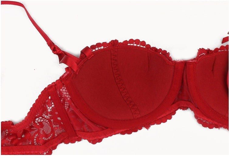 Lace Push-Up Bra Garter Set - Three-Piece Half Cup Lingerie