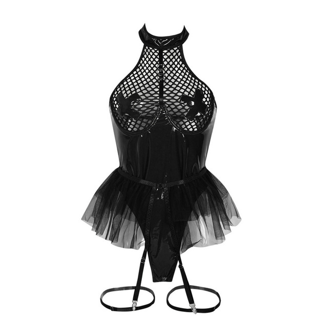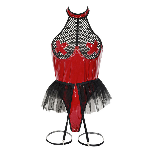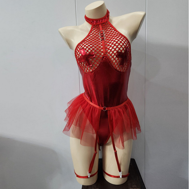 Fashionable Classic Womens Multi-piece Lingerie Set Featuring A Push-up Design Halter Neck And Glossy Finish