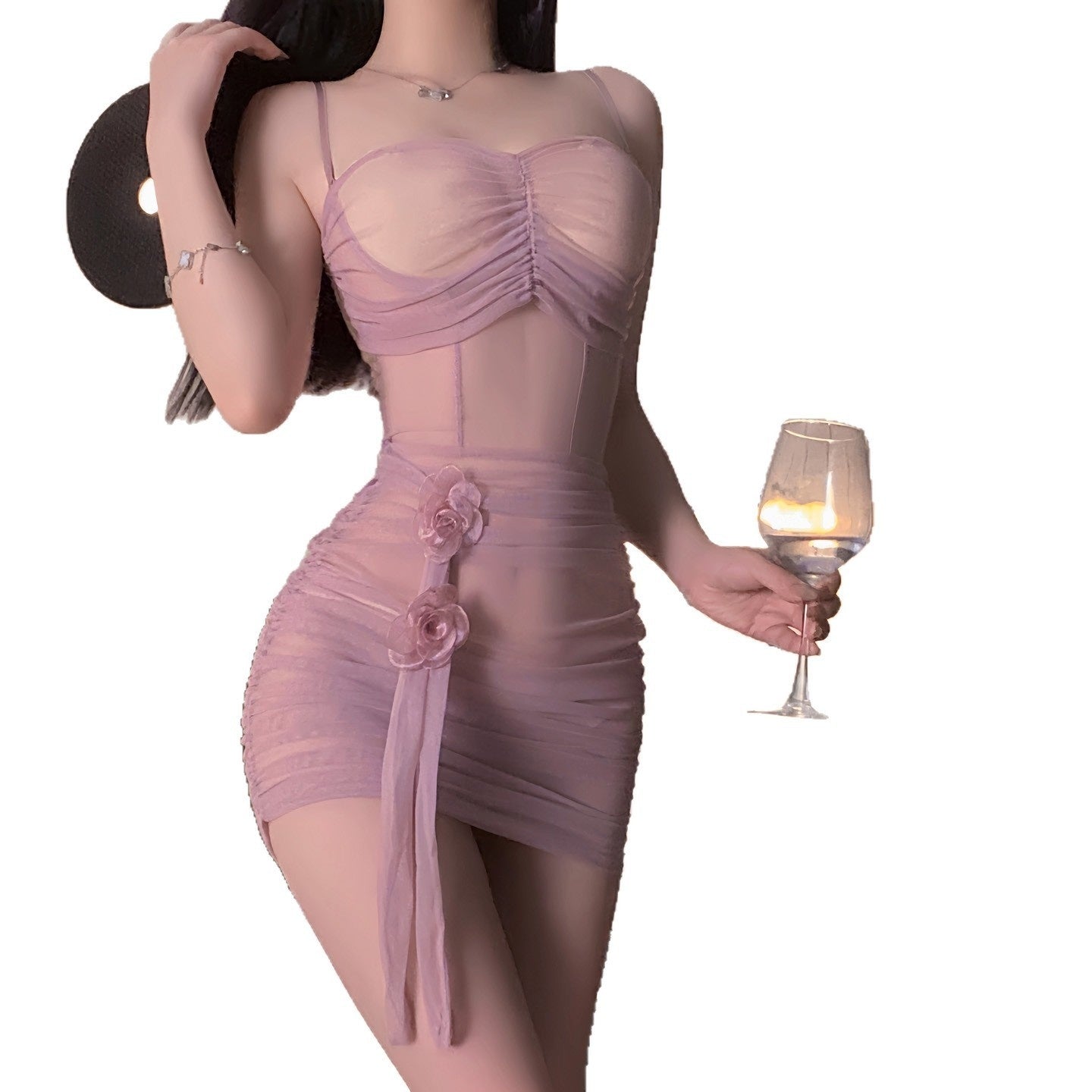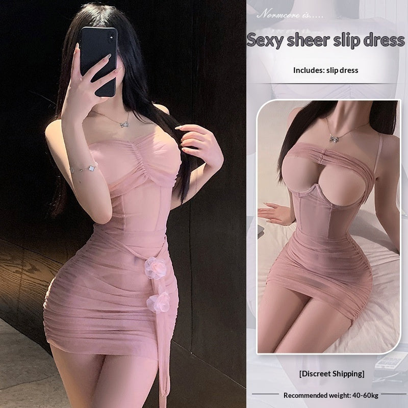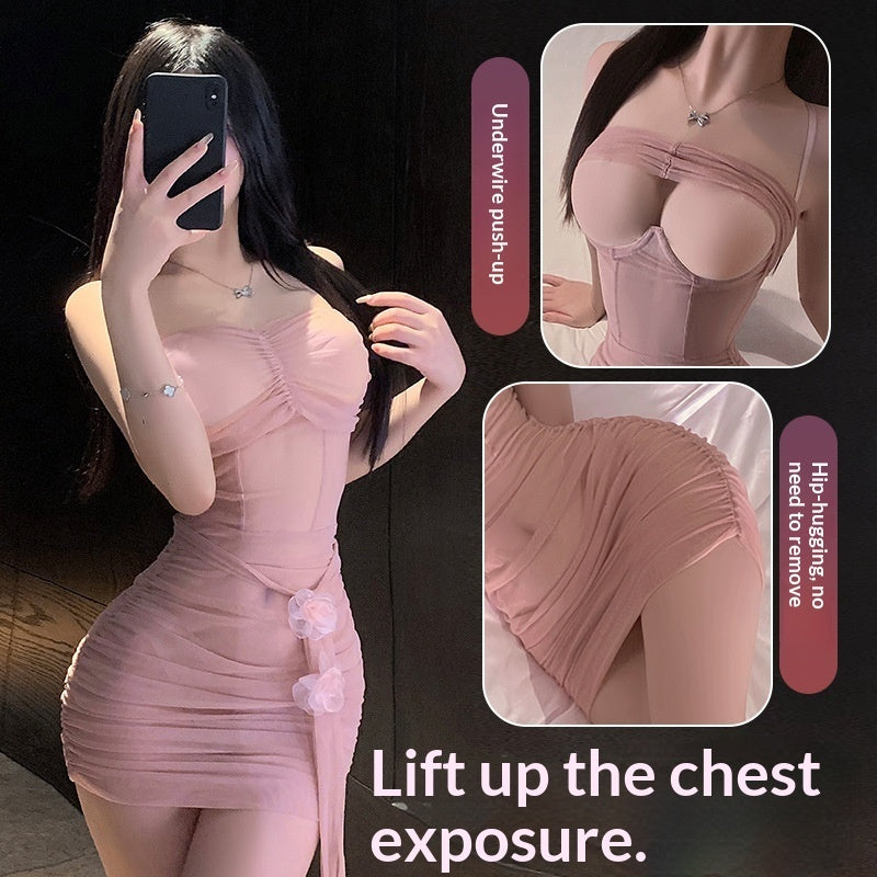 What's Included: Complete 5-piece lingerie set (skirt + thong + 2 flowers + mesh ribbon)