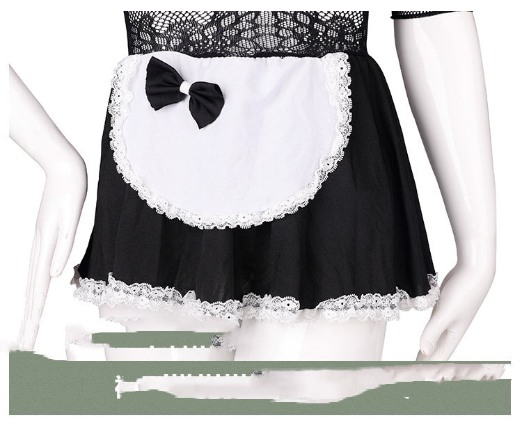 Hair band*1-Net dress*1-Leg loop*1-Middle-tube fishnet stockings*1pair