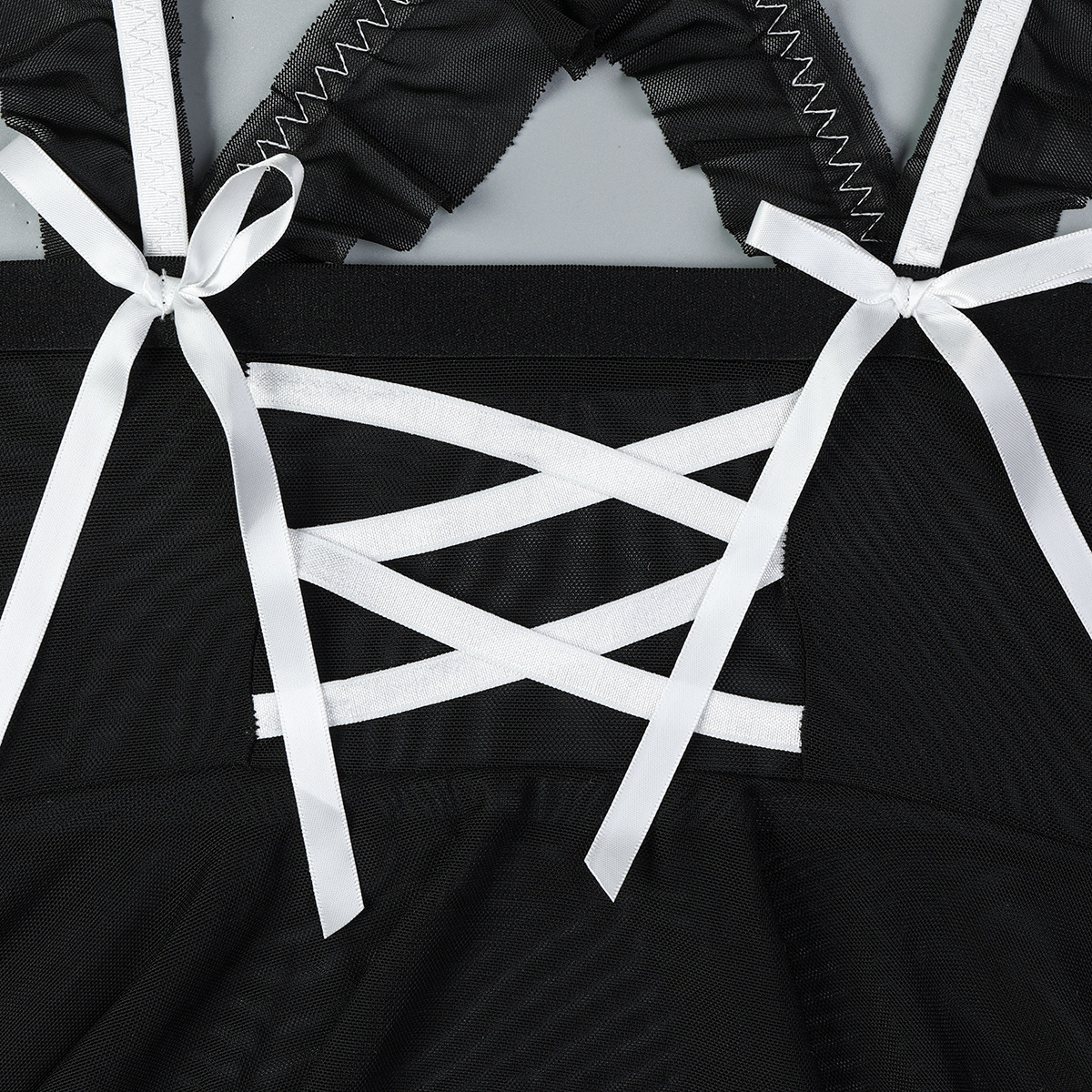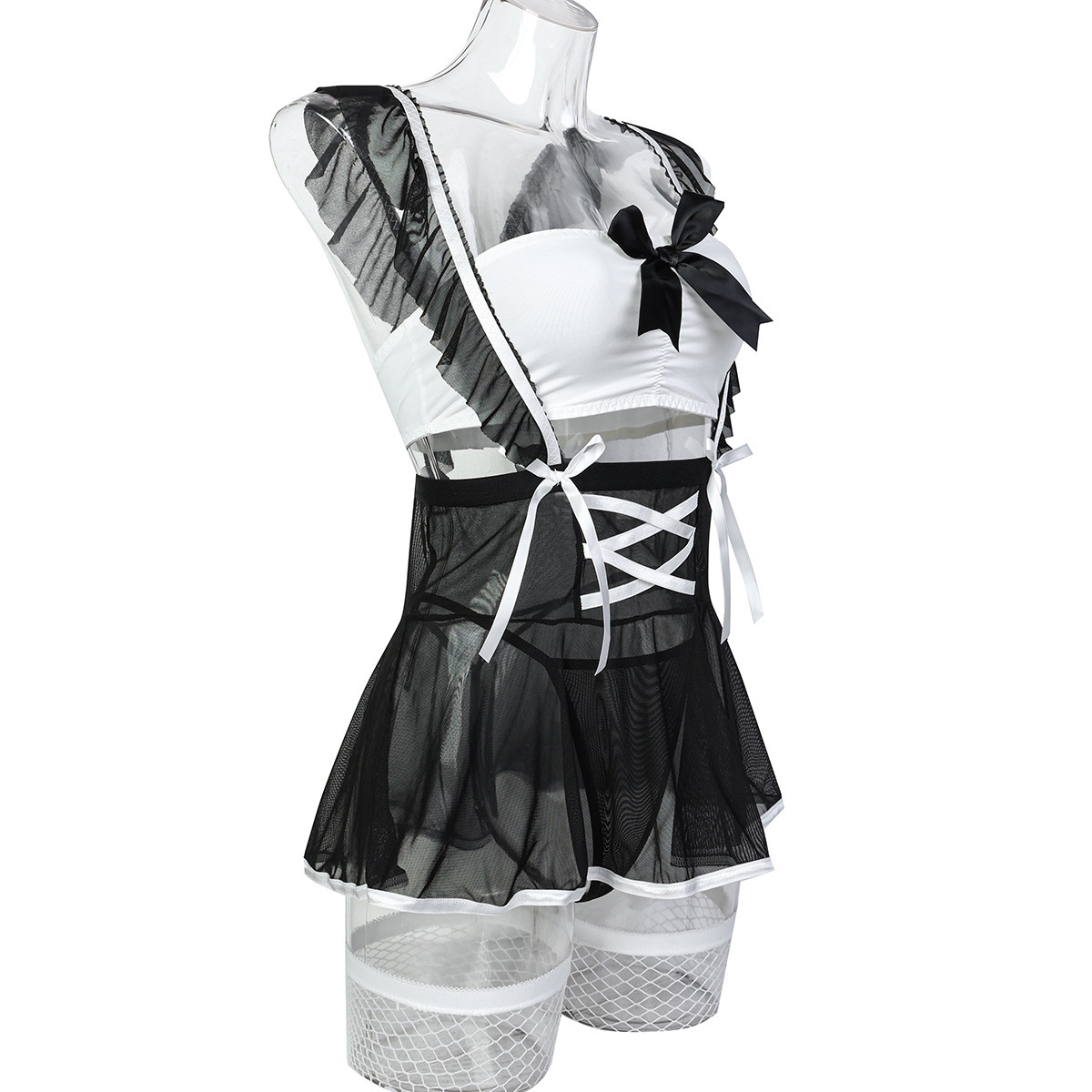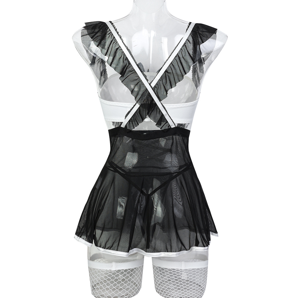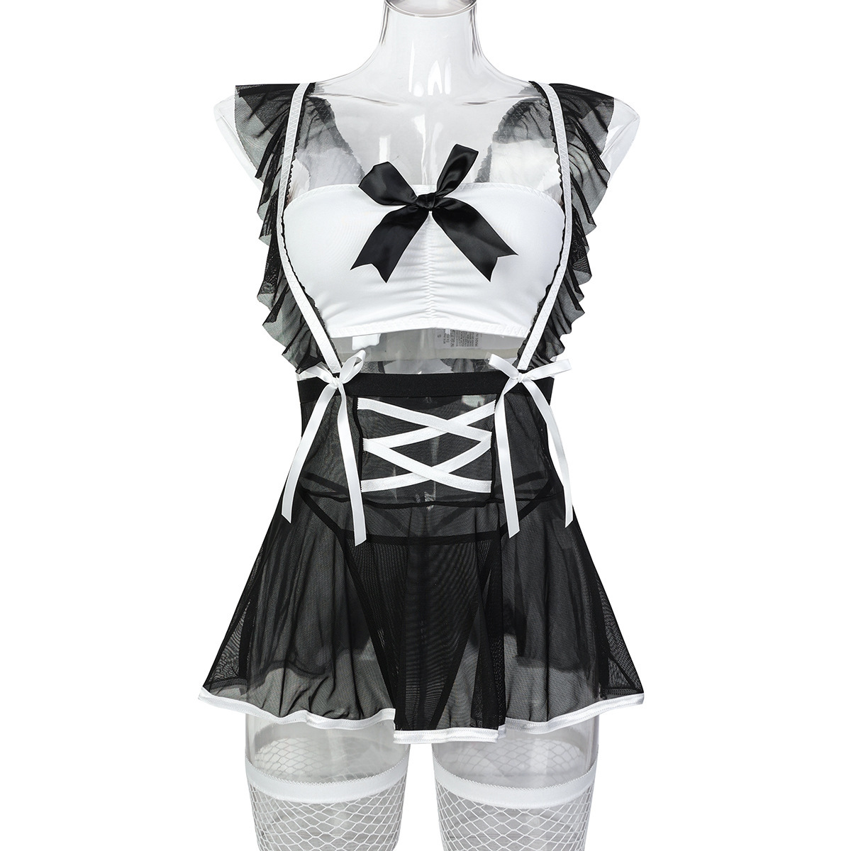 Sheer Mesh Maid Lingerie Set With Straps 4 Pieces