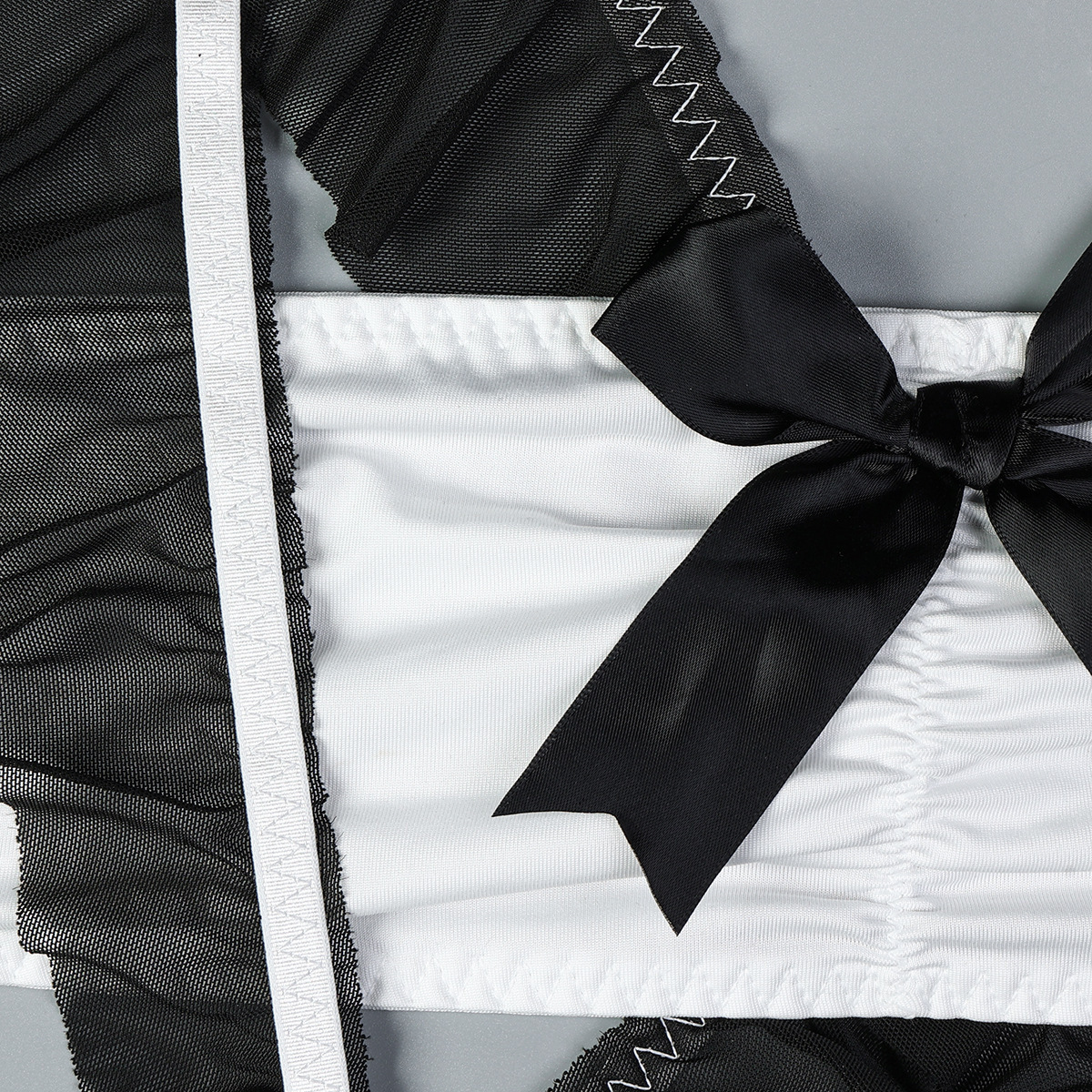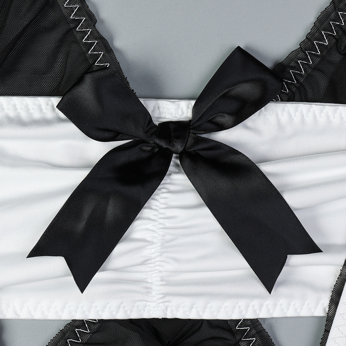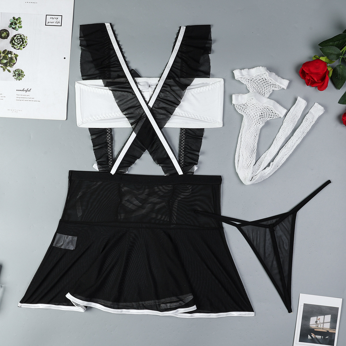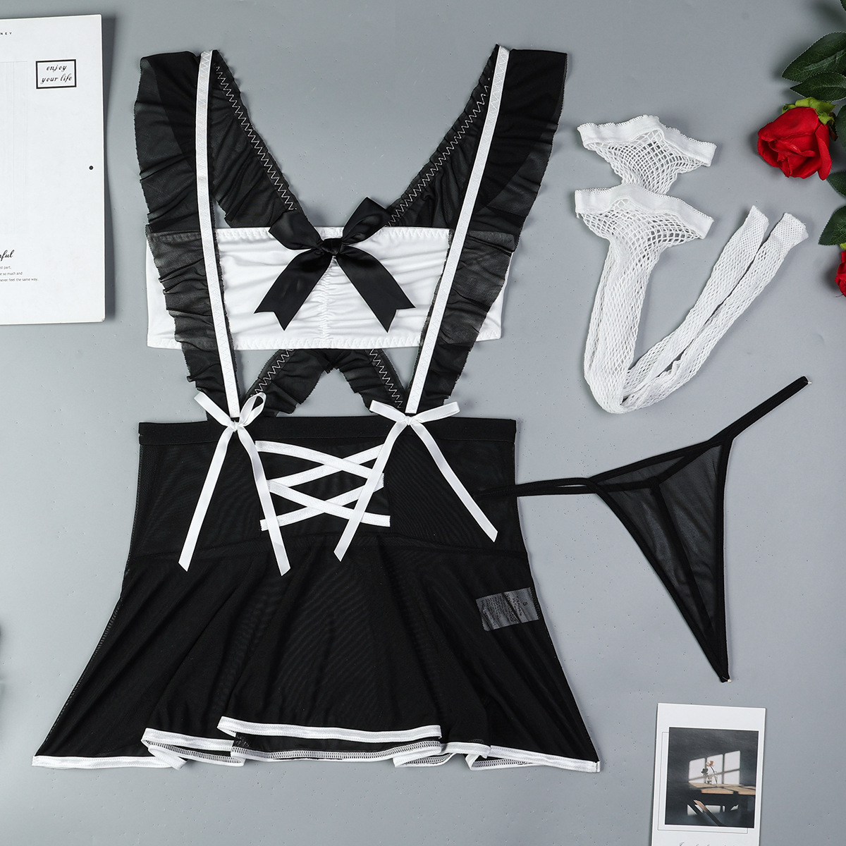 Sheer Mesh Maid Lingerie Set With Straps 4 Pieces