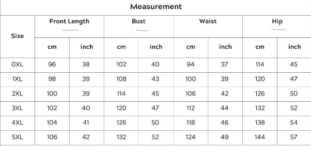 Size: 0XL,1XL,2XL,3XL,4XL,5XL