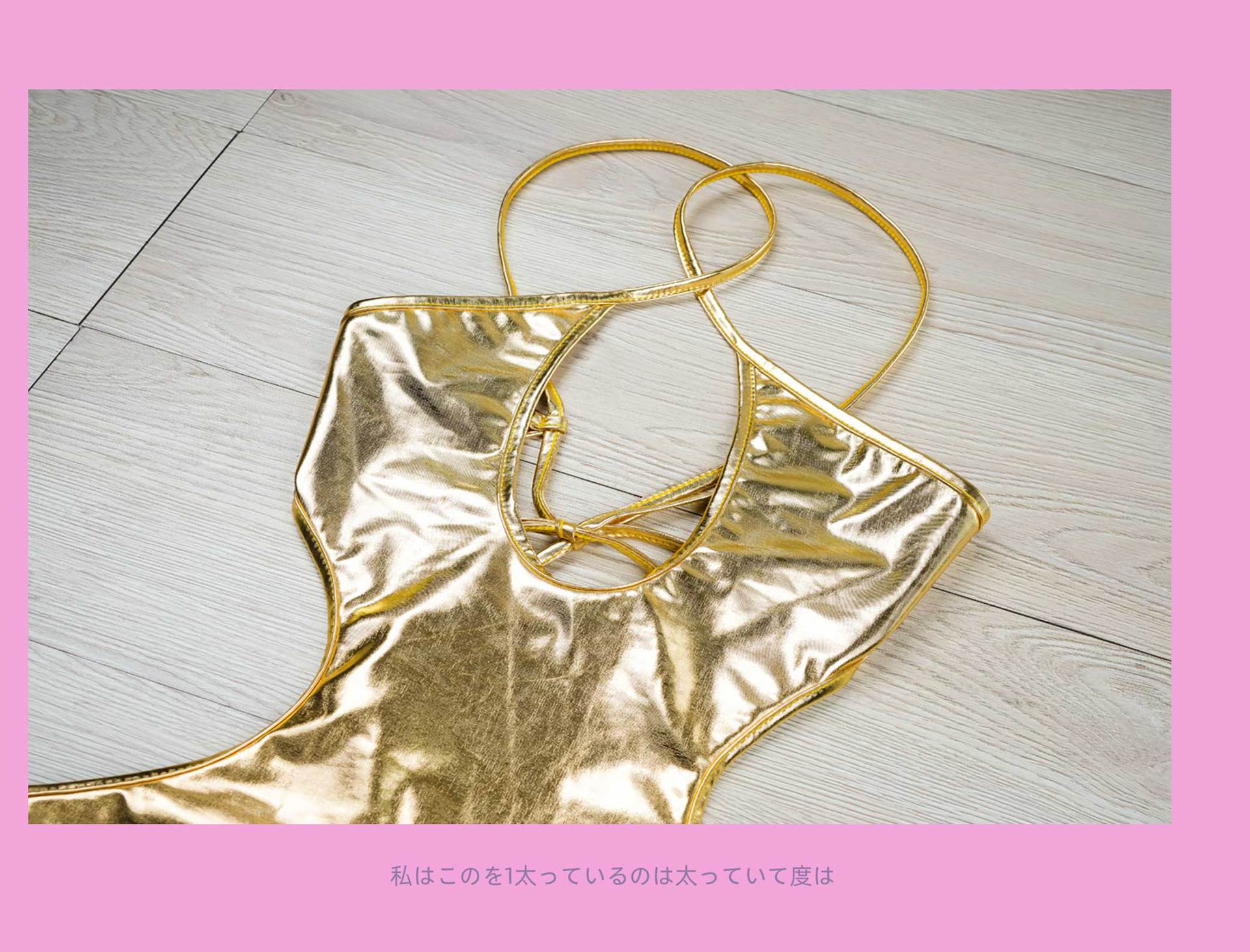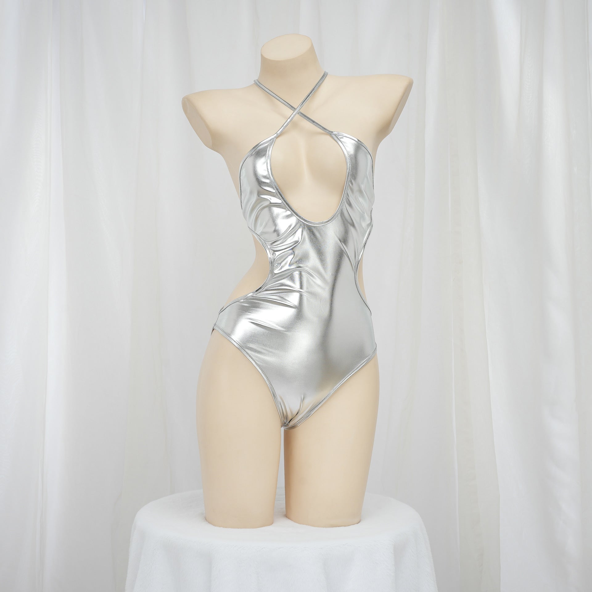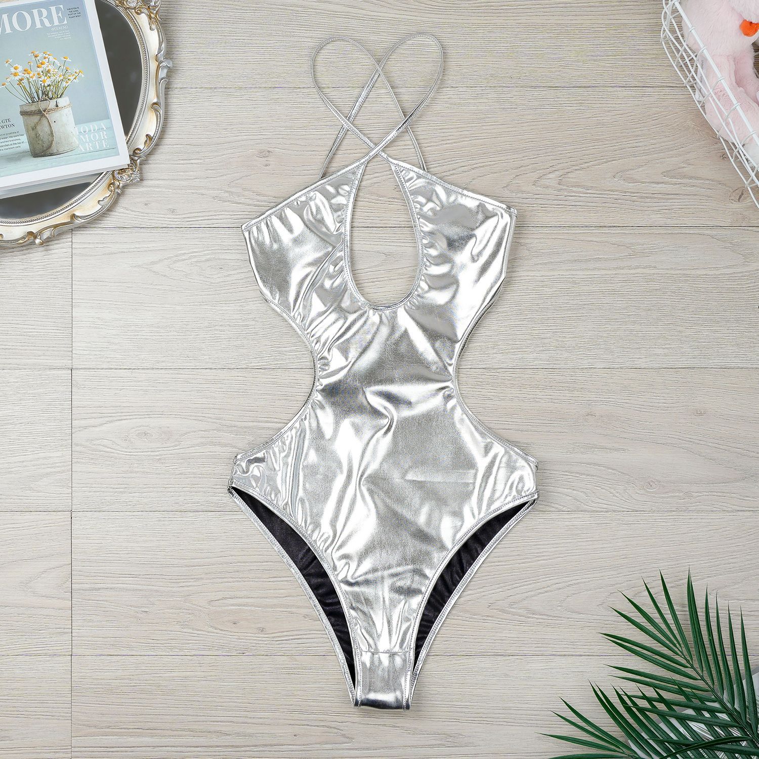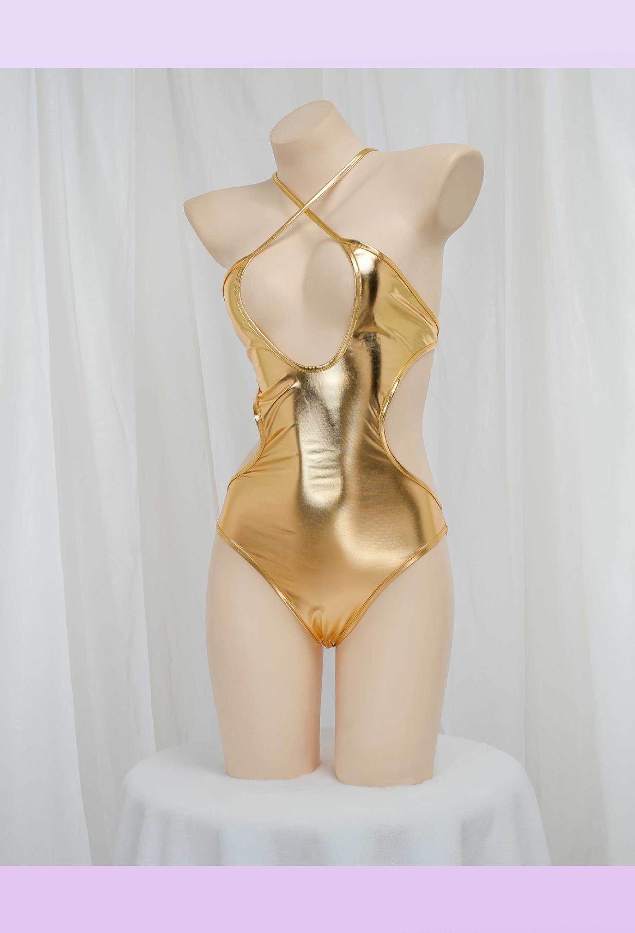 Womens Gold Glossy Bodysuit Sexy Lingerie