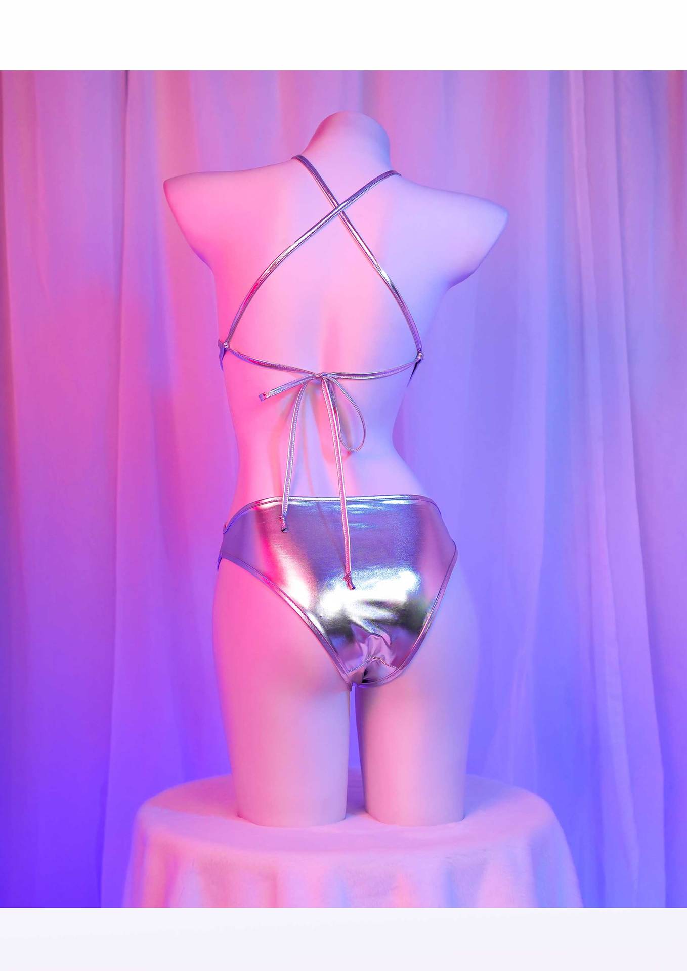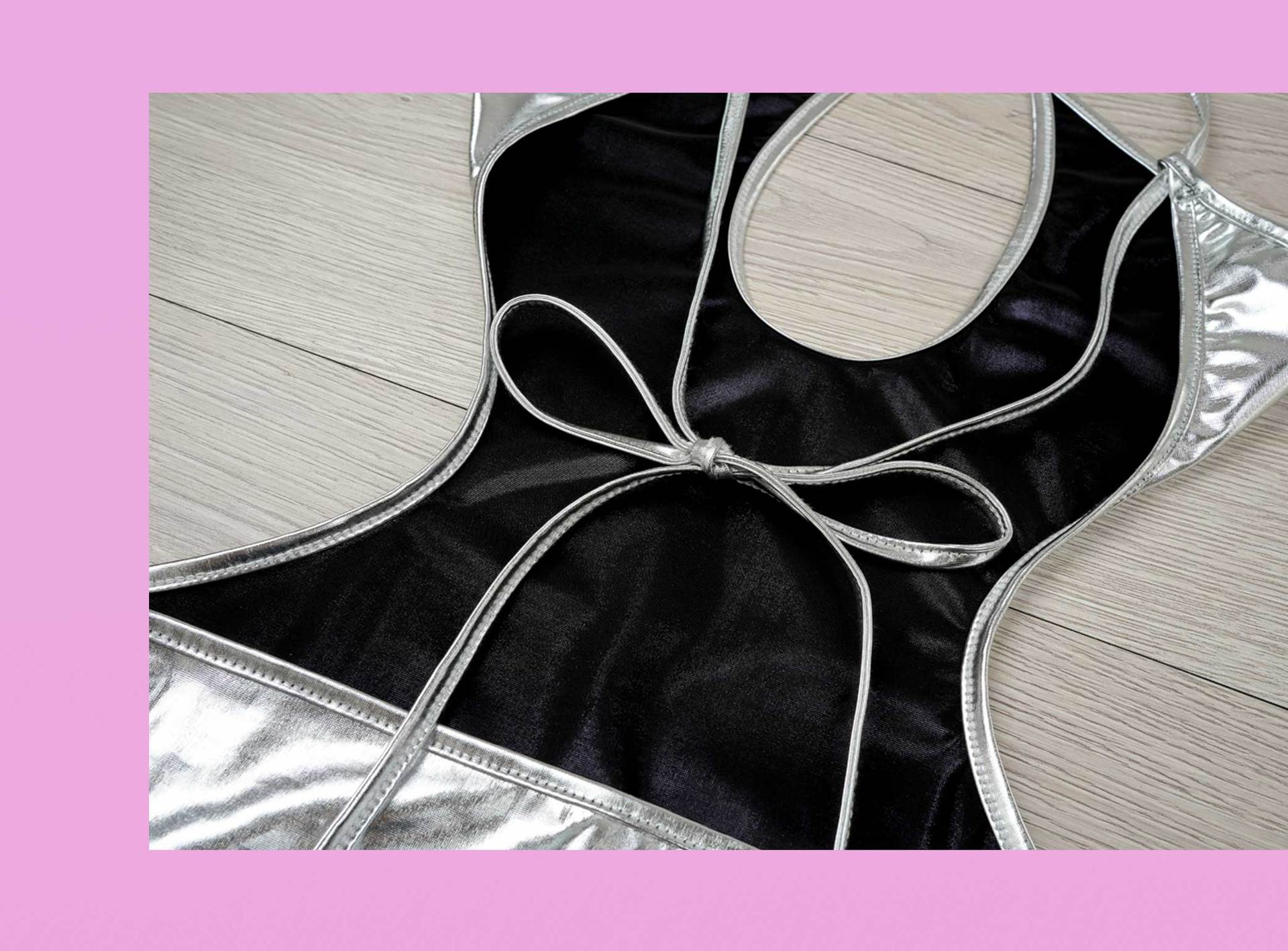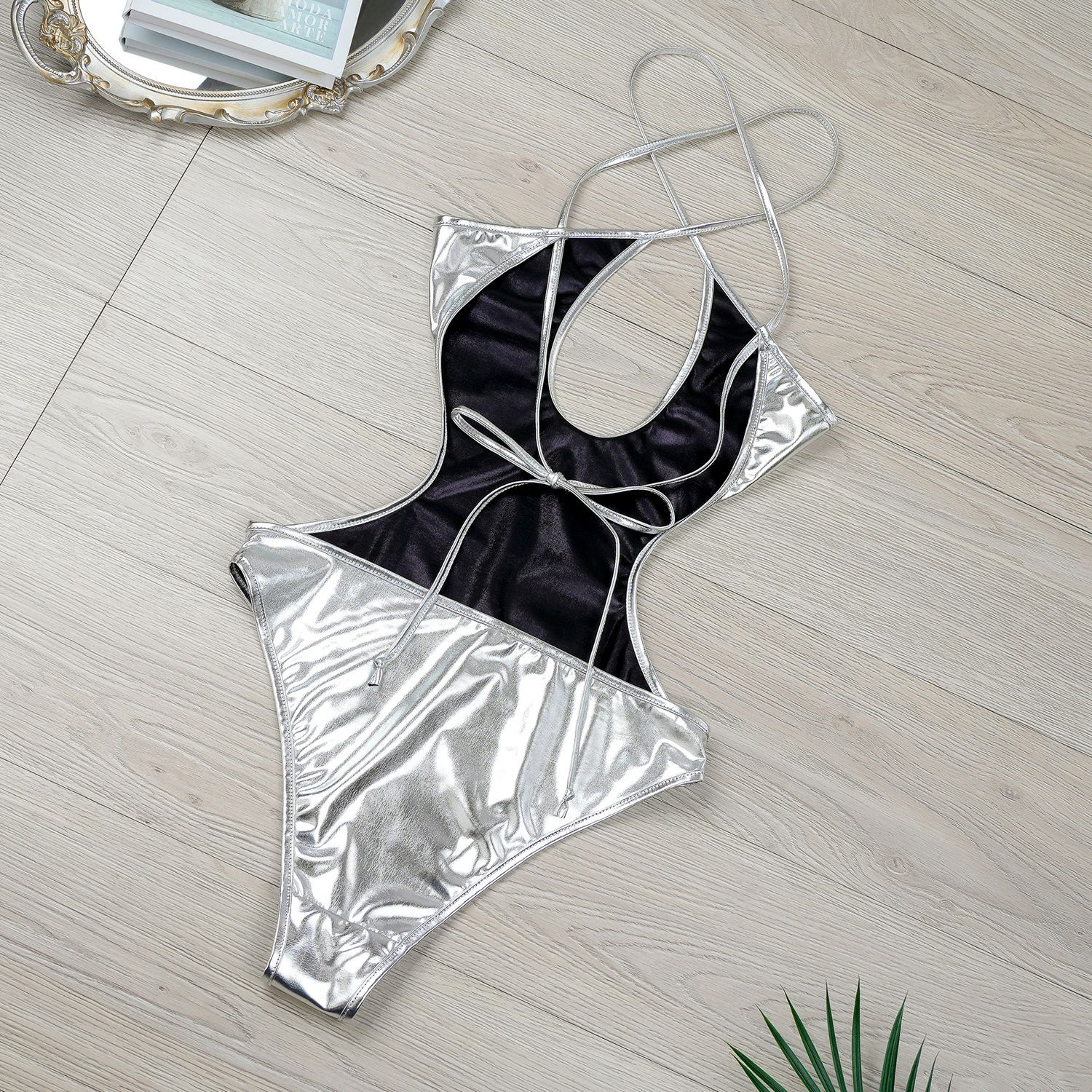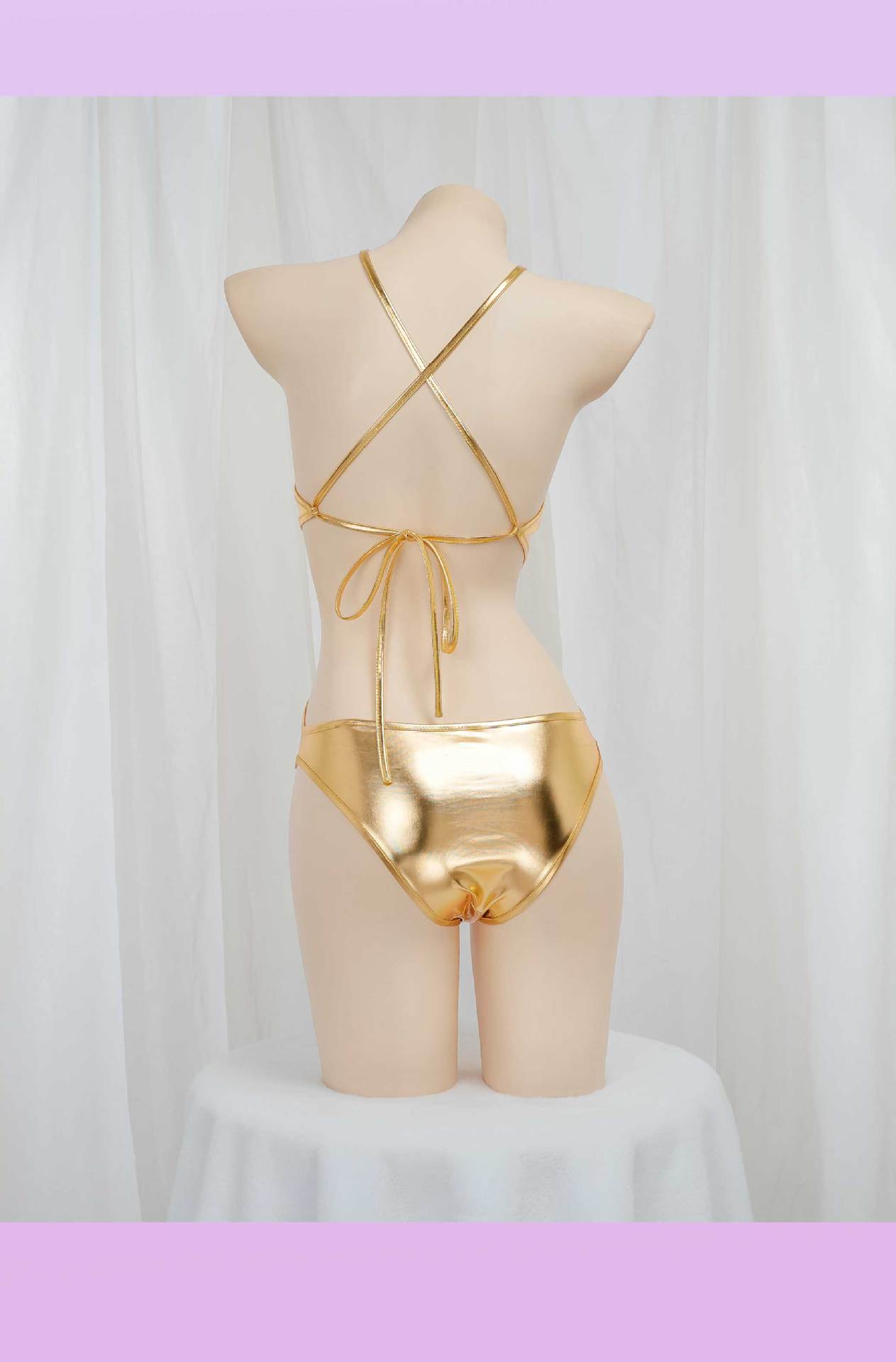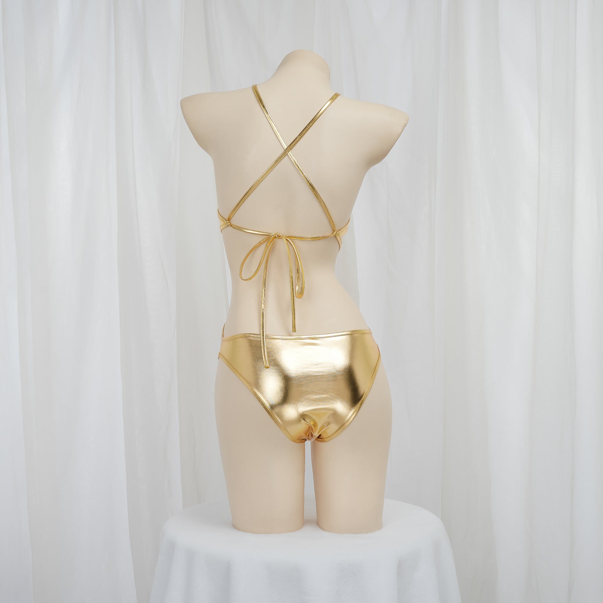 Womens Gold Glossy Bodysuit Sexy Lingerie