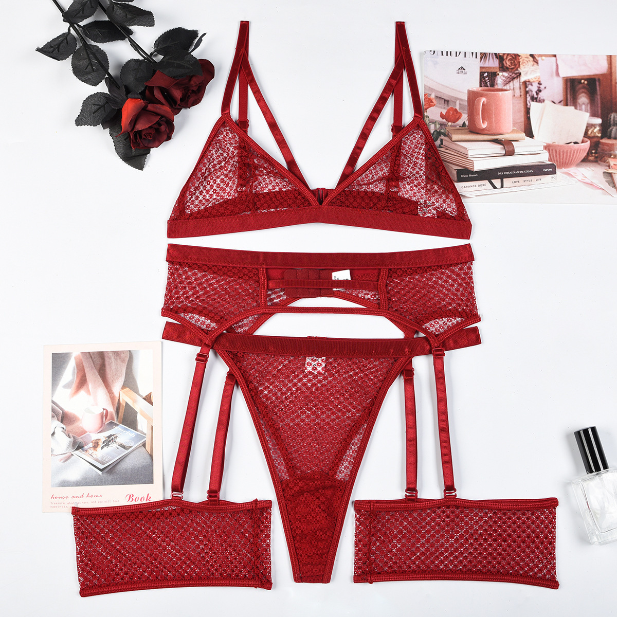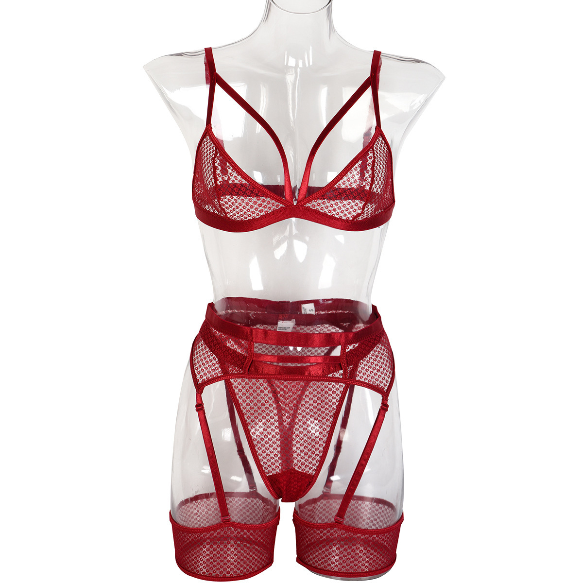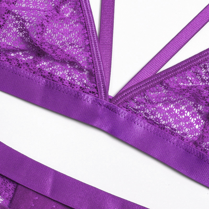 Womens Lace Sheer Lingerie 3-Piece Set