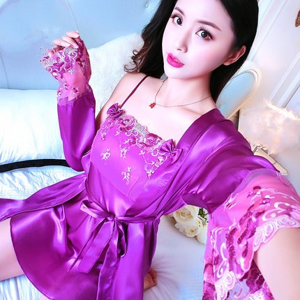 Women's long sleeve silk nightdress